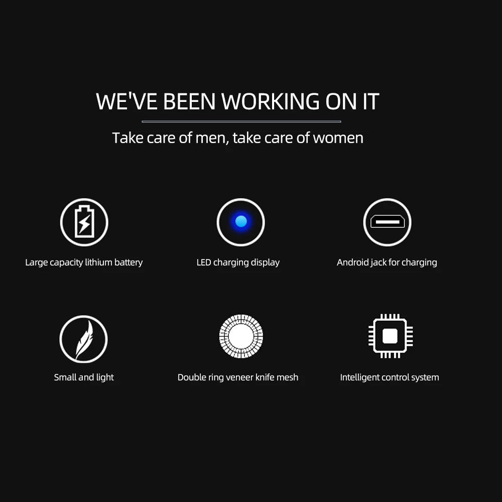 Super powerful battery life, our Feihong mini electric shaver can be used for a whole month after a single charge, and the wireless charging time is 120 minutes.